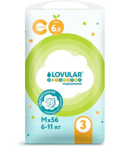 Подгузники «LOVULAR ВИТАМИНКА» для ухода за детской кожей с особой заботой