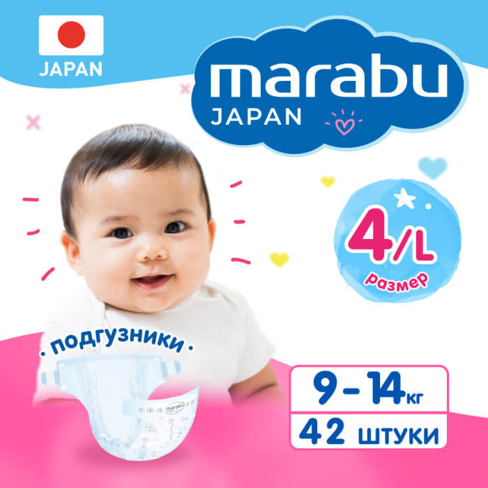Подгузники MARABU на липучках созданы специально для заботы о чувствительной коже малыша. Детские товары разработаны в Японии и отвечают высоким стандартам качества.