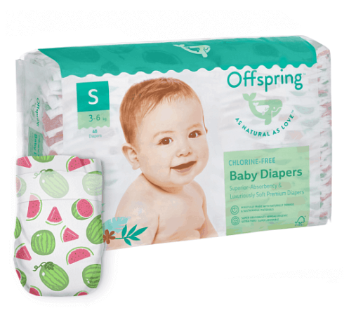 Offspring Подгузники 3-6кг 48шт Арбузы - первые подгузники, которые сочетают в себе безопасный состав и эко-подход скандинавских подгузников, и мягкость и комфорт азиатских. Стильные и безопасные подгузники Offspring созданы в Австралии в ответ на реальные желания современных мам и пап — быть уверенными в безопасности и удобстве их малышей. Offspring - тонкие, мягкие и ультравпитываюшие подгузники без хлора: Offspring производятся по японской технологии с использованием лучшего японского суперабсорбента по стандартам качества ISO 9001 & ISO 1400, поэтому отлично впитывают и не пропускают влагу.