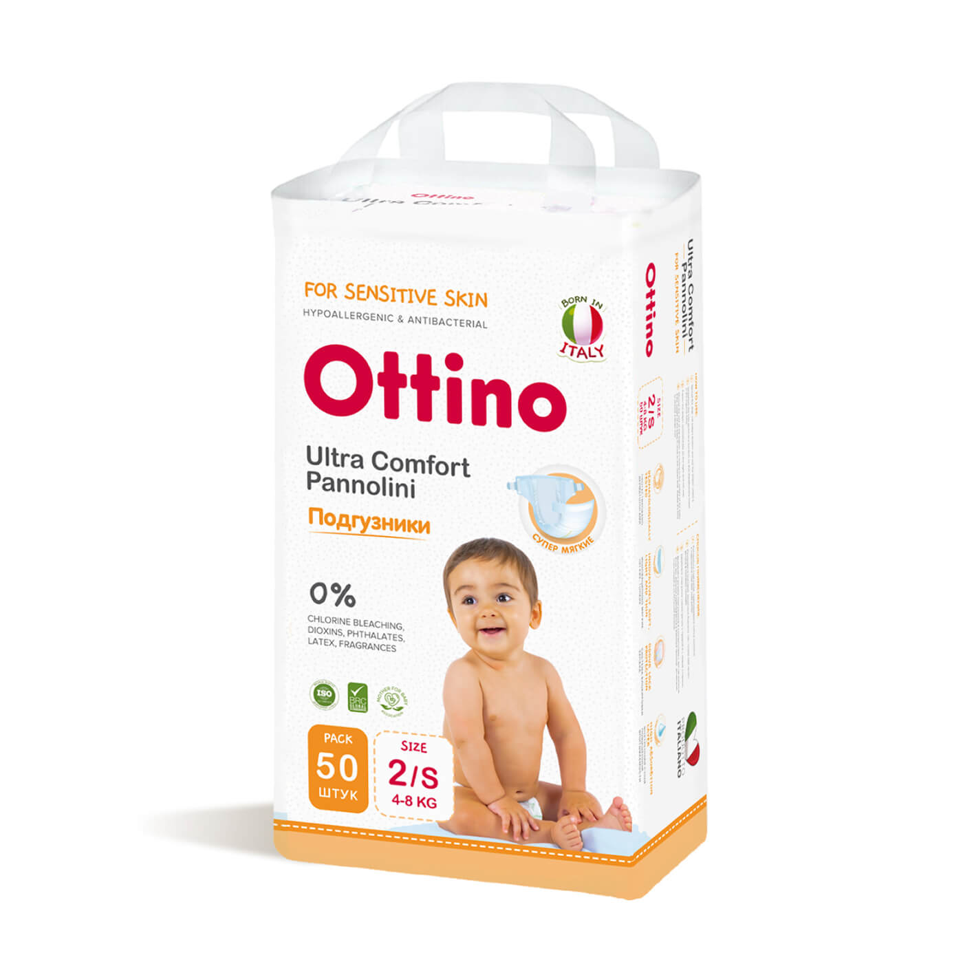 Мягкие и легкие подгузники на липучках нежнейшего материала. Практически невесомый подгузник не сковывает и не стесняет движения малыша. Продукция не вызывает высыпаний благодаря новым усовершенствованным компонентам в составе.