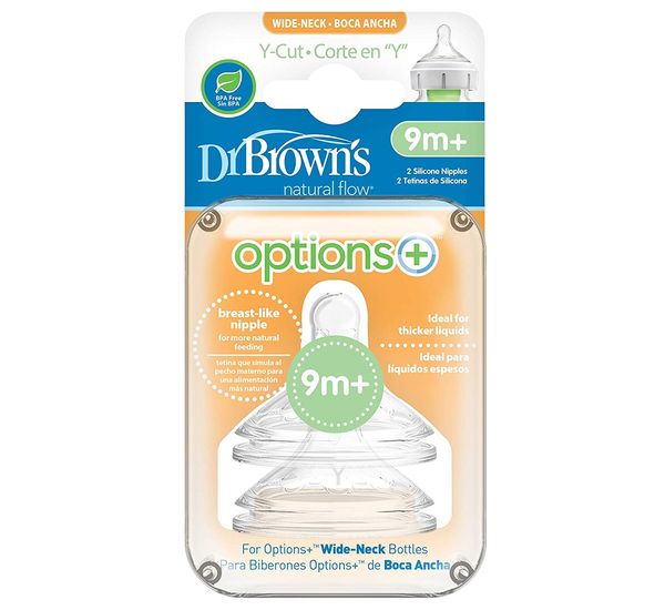 Д.Браун Соска силикон шир.горло 9м+ 2шт - для соков с мякотью и жидких каш повторяющая форму материнской груди, помогает ребёнку правильно приложиться к соску, применяя усилия и задействуя группы мышц как и при естественном кормлении.