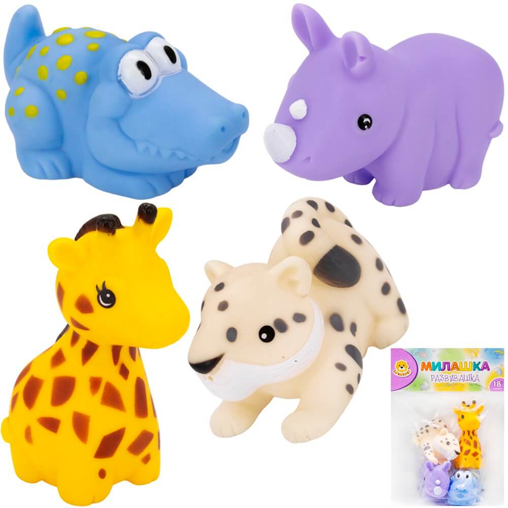 Комплектация: 4 резиновые фигурки (жираф, носорог, крокодил, леопард) Возраст: детям с 18+ месяцев