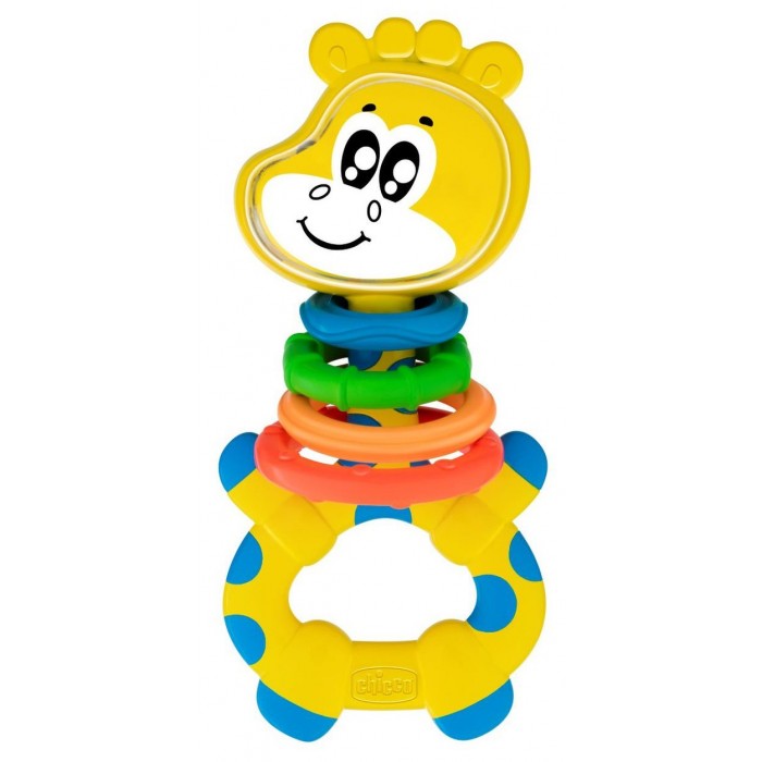 - Забавная игрушка в форме жирафа от Chicco стимулирует развитие зрительных способностей малыша благодаря контрастным цветам и кольцам разного размера