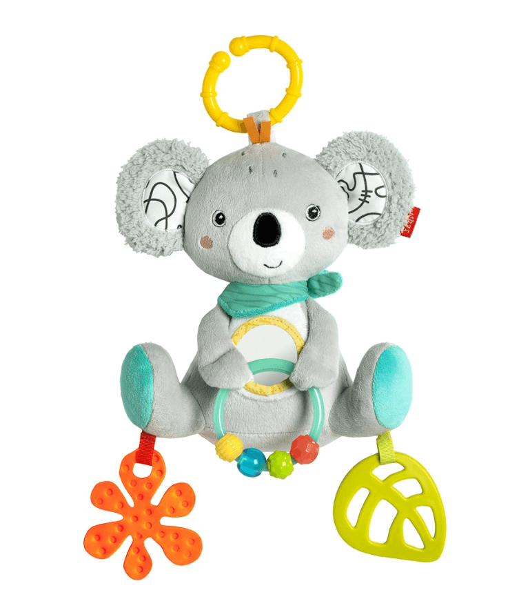 Играем и учимся дома и в дороге! Развивающая игрушка коала — в помощь мамам: у неё есть практичное колечко, которым легко прикрепить игрушку к автокреслу, коляске или кроватке.