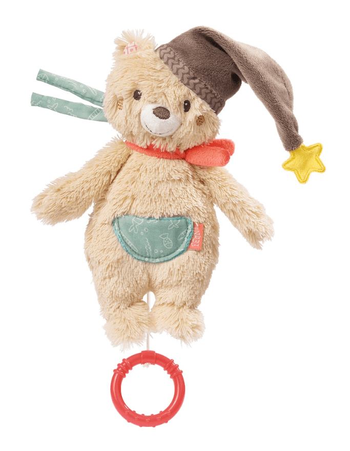 Медвежонок очень приятный на ощупь – с ним здорово обниматься и играть. Музыка включается, если потянуть за колечко. Игрушка развивает хватательные навыки, тактильное восприятие, зрение и слух ребенка.