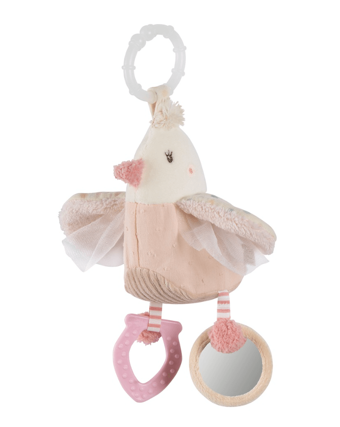 С этой птичкой весело играть дома или в дороге: благодаря практичному крепёжному кольцу игрушку можно прикрепить к коляске, автокреслу или к кроватке.