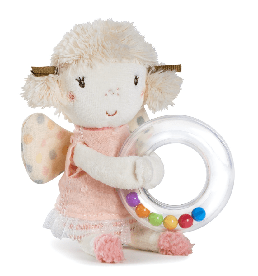 Мягкая игрушка фея с колечком-погремушкой, внутри которого находятся цветные бусины. Она стимулирует сенсорное развитие и тактильное восприятие. Нежная фея в розовых тонах станет отличным компаньоном малыша как днём, так и во время засыпания. Мягкая фея очень приятная на ощупь. Колечко удобно хватать маленькими ручками.