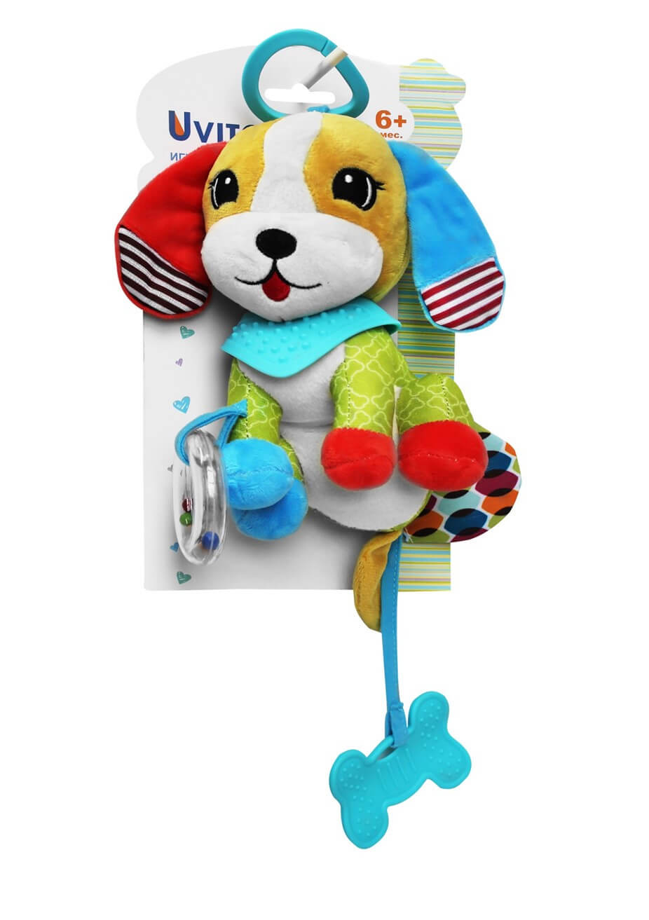 Игрушка-подвеска Собачка (Uviton) подарит Вашему малышу массу незабываемых эмоций и сотни улыбок! Такую игрушку с удобным кольцом можно легко подвесить к бортику детской кроватки, к коляске или к автокреслу.Игрушка сделана из мягкой, приятной на ощупь ткани, поэтому ребенку не захочется с ней расставаться! Яркие цвета привлекут внимание малыша, тем самым он будет учиться концентрироваться и фокусировать взгляд на объекте. Внутри игрушки - погремушка, а в ножки вшиты забавные шуршалки и прорезыватели (листочек и прозрачный круг с разноцветными шариками). Изготовлена подвеска из тканей разного цвета и разной фактуры. Гладкие, плюшевые, хлопковые, атласные типы тканей были созданы специально для того, чтобы кроха развивал тактильные ощущения, слух и зрение. На спинке есть небольшой карман, который сохранит прорезыватель в чистоте.