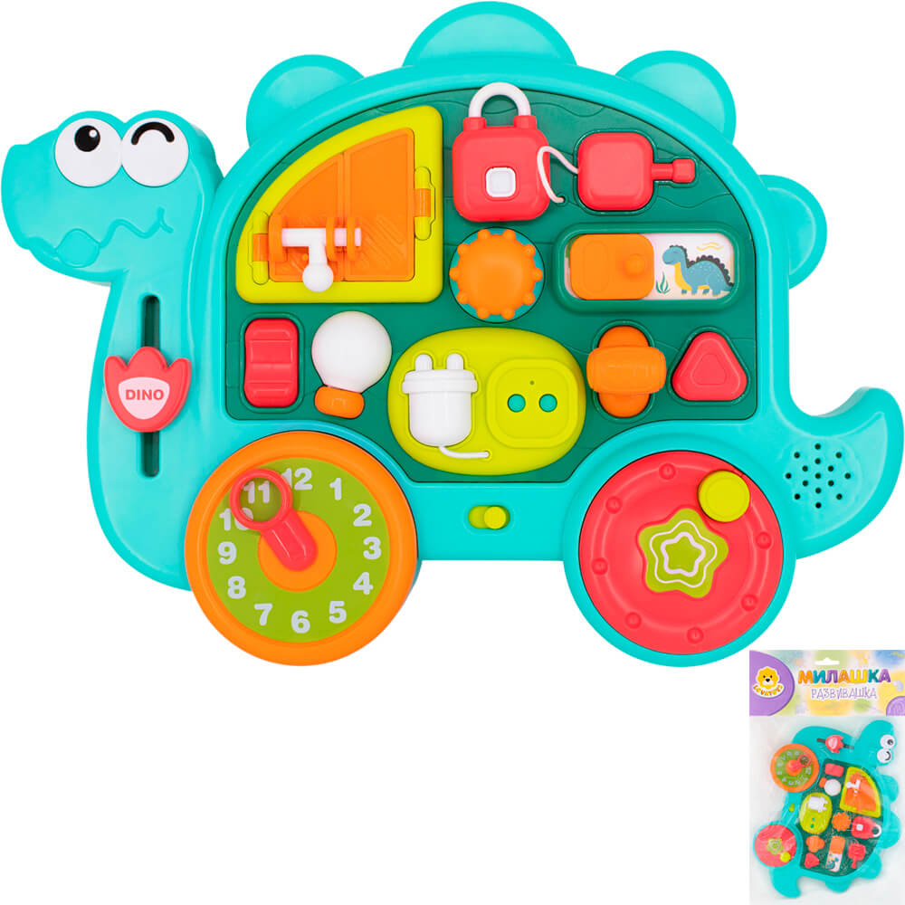 Оригинальная игрушка для развития важных навыков ребенка. Особенности: развивающая игрушка, 2 уровня громкости, колесо трещотка, часы с подвижной стрелкой и трещоткой, подвижные элементы, открывающиеся дверцы, замок открывается при помощи ключа, при включении вилки в розетку загорается лампочка и играют мелодии, выключатель включает лампочку и мелодии, гудок и звук запуска двигателя, для работы необходимы 3 батарейки АА 1.5V (не входят в комплект)