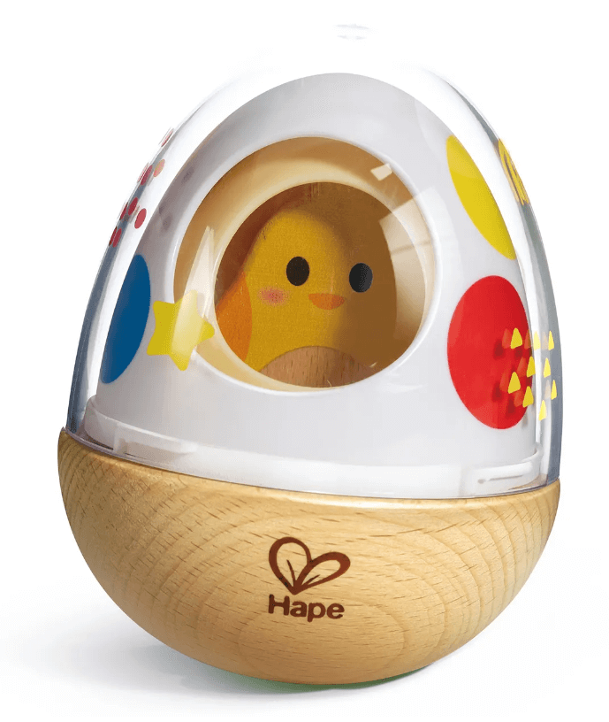 Игрушка - неваляшка с тремя съемными колпачками и деревянным цыпленком. Игрушка интересна для малышей, потому что позволяет проводить несколько операций подряд: снять колпачки, спрятать цыпленка и обратно. Неваляшка изготовлена из качественных нетоксичных материалов (дерево, пластик), имеет прочное основание и предназначен для частого использования. Набор предназначен для детей с самого рождения (0+).