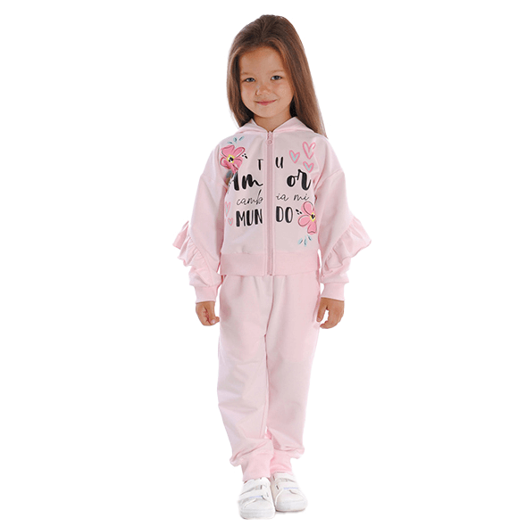 Куртка для девочки. Состав: хлопок 95%, эластан 5%. Рукав длинный. Модель декорирована печатью, оборками по рукаву и спинке. Капюшон без утяжки. Застежка -молния. Пояс и манжеты – рибана. Рекомендуется стирка при 30-40 градусах.