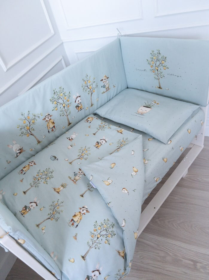 Милый и комфортный комплект постельных принадлежностей для детской кроватки, из коллекции «Village» , выполнен из высококачественного поплина и сатина европейского качества (международный сертификат качества OEKO-TEX Standart 100). Дизайн комплекта – результат работы талантливого художника и профессиональной команды ТМ Lappetti. У нас получился нежный и легкий комплект, который сделает сон Вашего ребенка спокойным и безопасным.