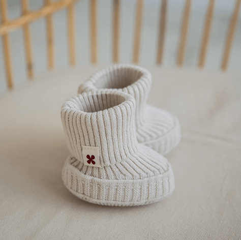 Пинетки с вязкой в рубчик. Цвет топленое молоко. При соблюдении правил ухода изделие надолго сохраняет свою форму и цвет.