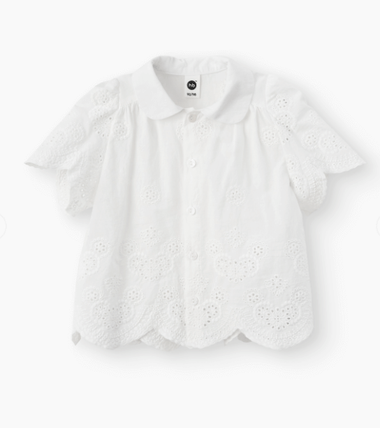 Легкая хлопковая блуза для девочки - отличный выбор для летних прогулок и праздничных мероприятий. У блузы короткие рукава-фонарики и изящный отложной воротничок, которые придают образу нежность и утонченность. Ажурный рисунок по всей поверхности добавляет изделию воздушности.
