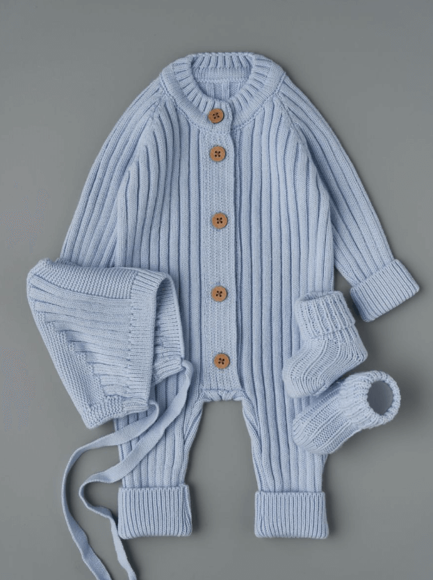 Вязаный комплект для малышей — стильное и уютное решение, включающее комбинезон, шапочку и носочки. Изготовлен из качественной пряжи (20% хлопок, 30% шерсть, 50% ПАН), которая сочетает в себе мягкость, тепло и практичность. Благодаря своей эластичности комплект комфортен в носке и отлично сохраняет форму. Подходит для повседневной носки, прогулок на свежем воздухе, а также для особых случаев таких как фотосессия, крещение и выписка из роддома.