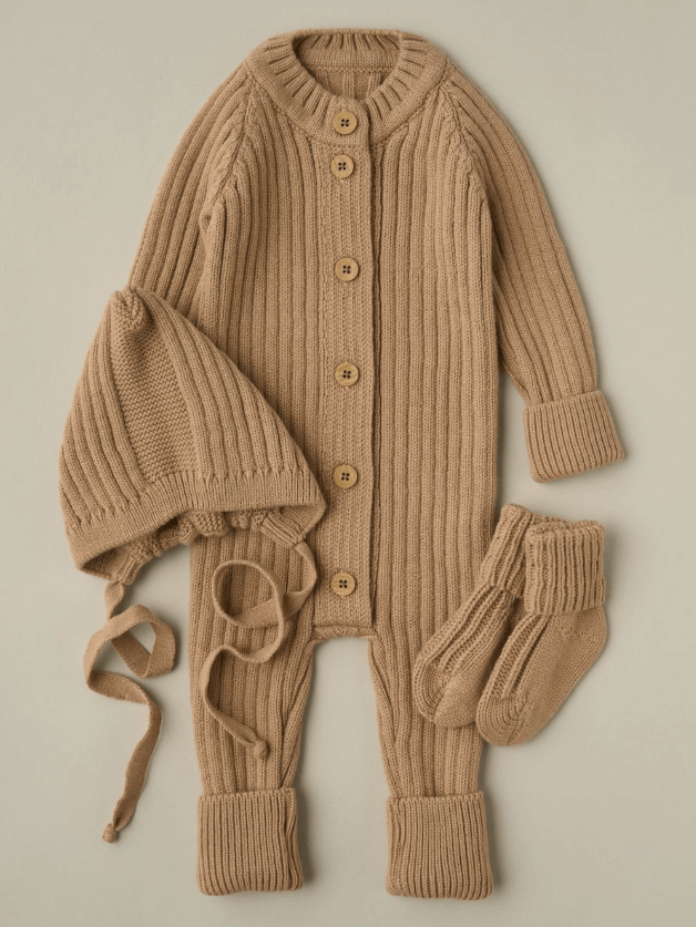 Вязаный комплект для малышей — стильное и уютное решение, включающее комбинезон, шапочку и носочки. Изготовлен из качественной пряжи (20% хлопок, 30% шерсть, 50% ПАН), которая сочетает в себе мягкость, тепло и практичность. Благодаря своей эластичности комплект комфортен в носке и отлично сохраняет форму. Подходит для повседневной носки, прогулок на свежем воздухе, а также для особых случаев таких как фотосессия, крещение и выписка из роддома.