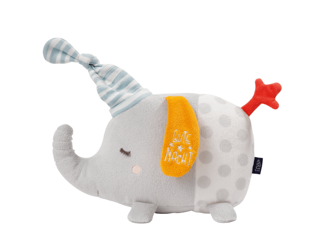 Слоник со светящимися элементами и блоком ночной подсветки поможет малышу избавиться от страха темноты. Включить ночник можно нажатием на игрушку, при следующем нажатии переключается его цвет. Ночник выключается сам, автоматически, спустя некоторое время работы. Блок с батарейками надежно спрятан внутри игрушки. Достать его можно, расстегнув молнию.
