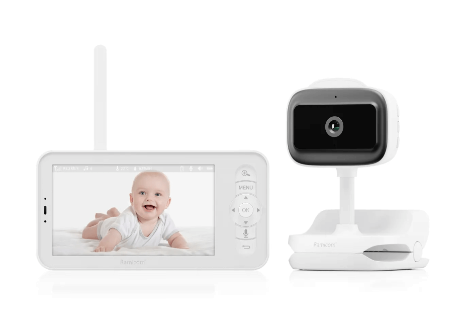 Видеоняня с аккумулятором в камере и креплением-прищепкой – надёжное цифровое устройство с большим дисплеем 12,7 см от известного производителя высококачественной электроники для удаленного присмотра за ребенком. Особенность данной модели заключается в камере, которая может крепиться практически к любым предметам, как прищепка, например, на элементах мебели или ручке коляски. Аккумуляторы большой ёмкости встроены и в камеру, и в монитор. Так что родители могут комфортно, без подключения к внешнему источнику питания, пользоваться данной видеоняней Ramicom дома и во время прогулок.
