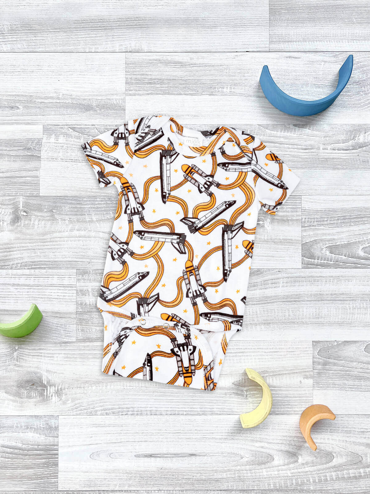 Боди Mjölk с коротким рукавом выполнен из тонкого 100% трикотажного хлопка. Плетение нитей в этой ткани менее плотное, чем у другой одежды из нашей коллекции, что позволяет комфортно использовать боди в качестве первого слоя