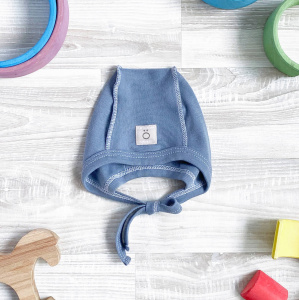 Изделие выполнено швами наружу, модель садится по голове ребёнка, хорошо повторяя её форму и надёжно закрывая ушки, а завязочки мягко удерживают чепчик.