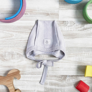 Изделие выполнено швами наружу, модель садится по голове ребёнка, хорошо повторяя её форму и надёжно закрывая ушки, а завязочки мягко удерживают чепчик.