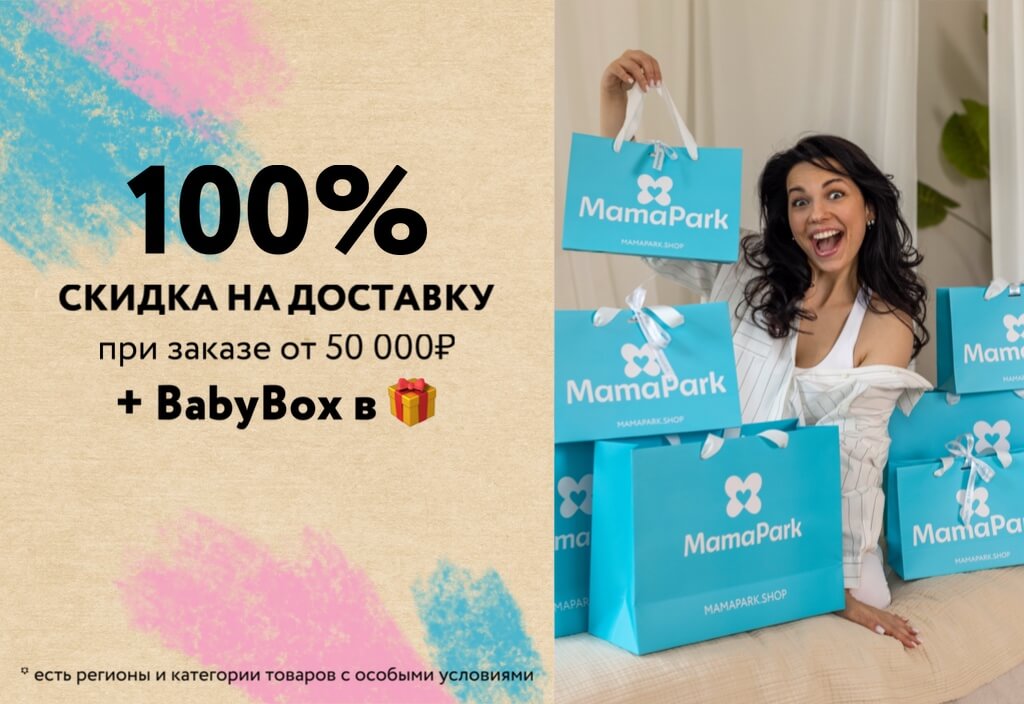 Фирменный BabyBox MamaPark вы получаете в подарок при покупке любых товаров нашего гипермаркета на сумму от 50 000₽.